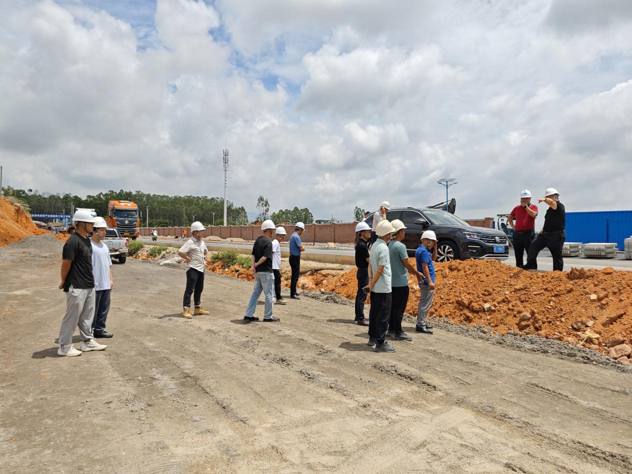 5月16日,公司董事长沈飞带队前往铁山港区绿色能源产业园路网工程——三号路(七号路至向海大道段)施工现场,开展勘察调研工作,实地督导项目建设进度 。