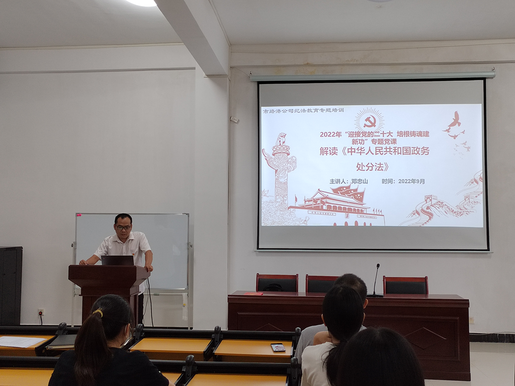 9月8日,beat365公司第三党支部在污水公司多功能室开展2022年“迎接党的二十大 培根铸魂建新功”专题党课活动,由beat365公司第三党支部书记邓忠山主讲题为《解读<中华人民共和国公职人员政务处分法>》的专题党课,污水公司全体员工参加学习。
