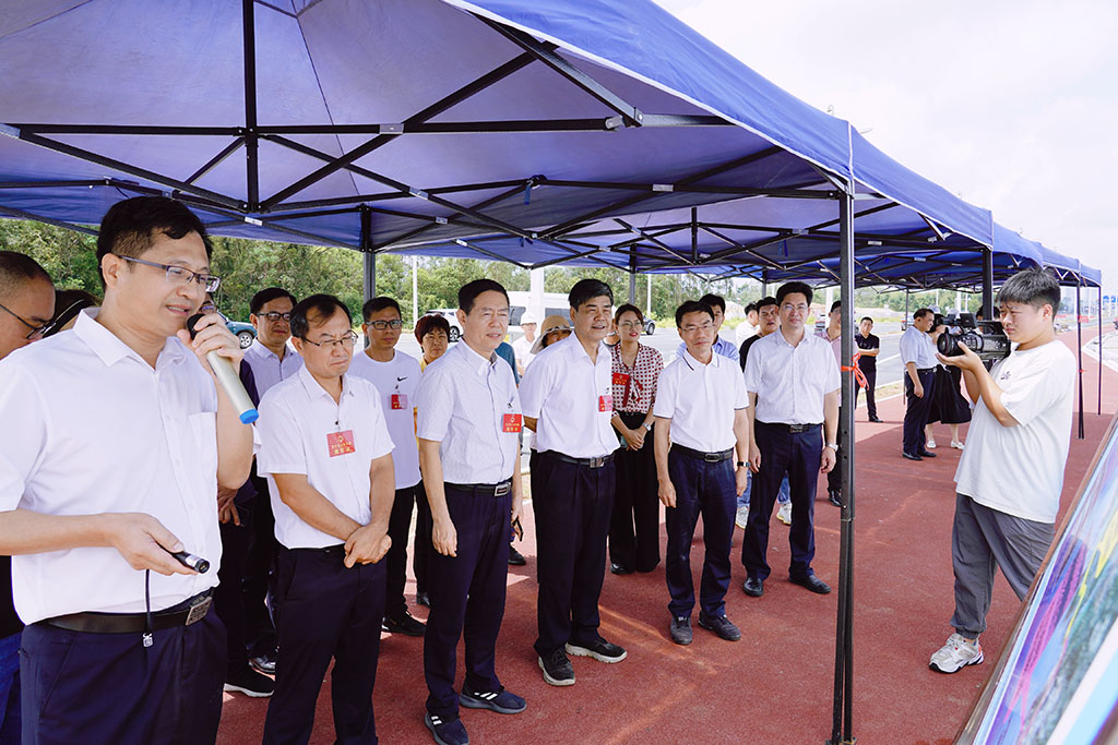 受自治区人大常委会委托,市人大常委会组织自治区人大代表进行年中专题调研。7月19日上午,市人大常委会主任、党组书记刘志明率自治区人大代表调研组到廉州湾大道工程(西门江西岸至向海大道路口段海城区段)开展调研活动。