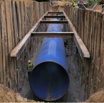 近日,北海市铁山港(临海)工业区A5深海排放管工程1号调压井-B3调压井临时接驳段顺利通水。