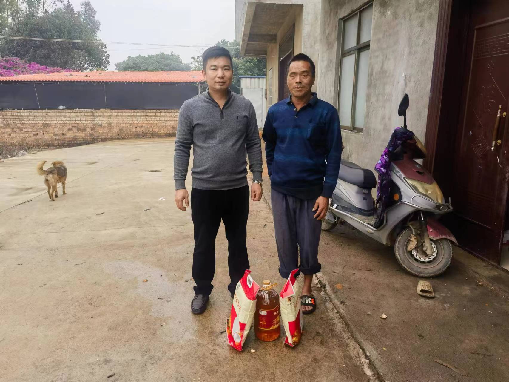 公司帮扶联系人入户慰问脱贫群众,为他们送上了米、油等慰问品,与他们亲切交谈,了解他们的收入和生活情况,宣传讲解移风易俗、垃圾分类、小额贷款等知识和政策,共同商量制定发展计划和帮扶措施,并鼓励他们努力创造更美好的生活,并送上新春的祝福。