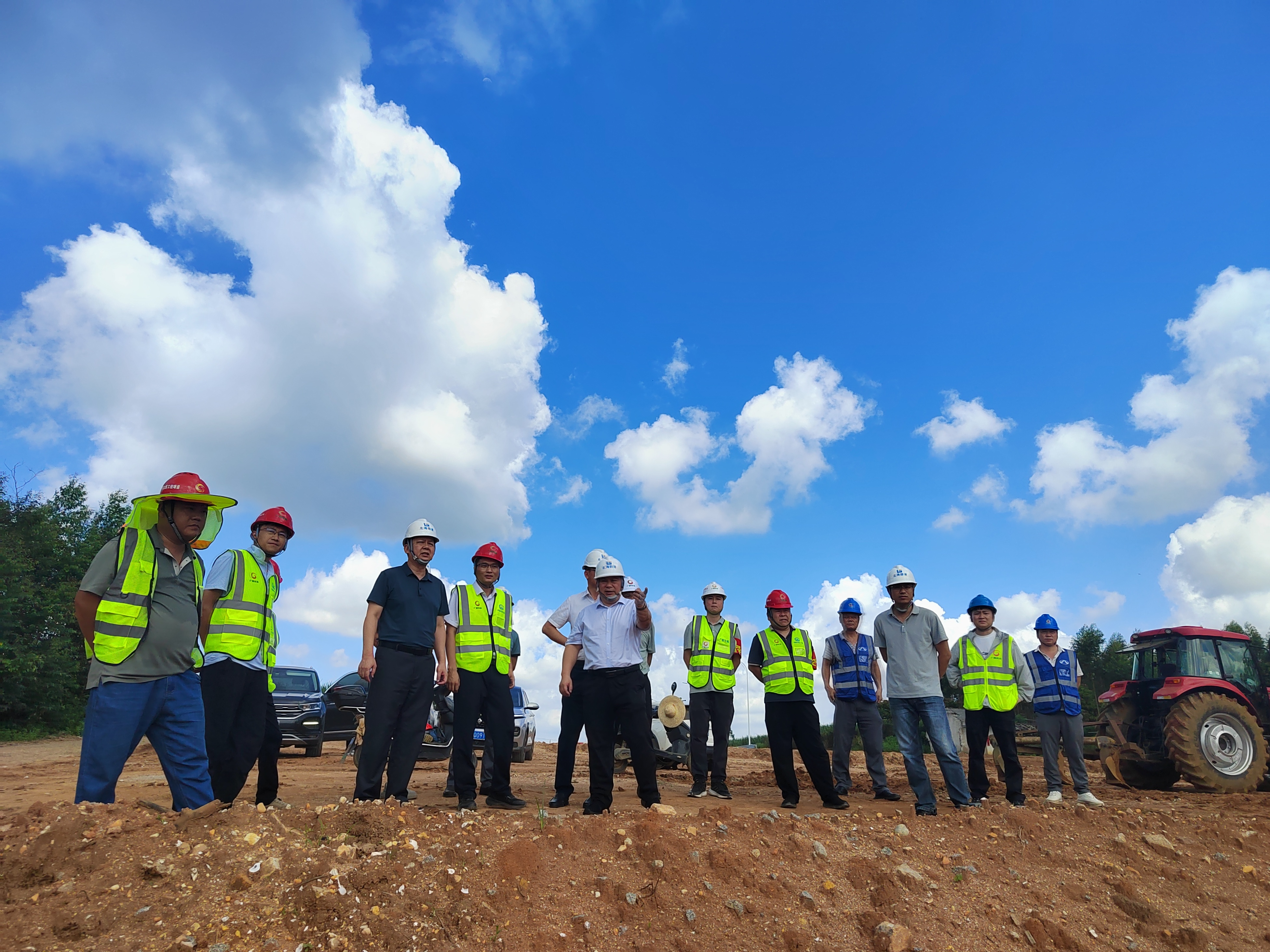 慰问活动结束后,公司领导和各参建单位代表在施工现场召开了项目协调会。在详细了解项目建设进展情况和问题后,沈飞强调,正在施工的G228丹东至东兴广西滨海公路工程(大风江至高德段)官井村段是钦州大风江大桥至合浦西场线的重要连接路段,按照市委政府下达的2024年9月30日前初步通车的要求,时间紧、任务重。近一个月以来,施工现场连续18天下雨且暴雨和骄阳反复交替,这对工程施工影响非常大,给业主、代建和施工单位按时按质地完成任务带来了严峻考验。各单位必须加大统筹力度,合理调度时间、资金、人员和设备等资源,在未来的34天里风雨兼程、日夜奋战,时刻紧绷安全弦,高质高效完成通车目标。