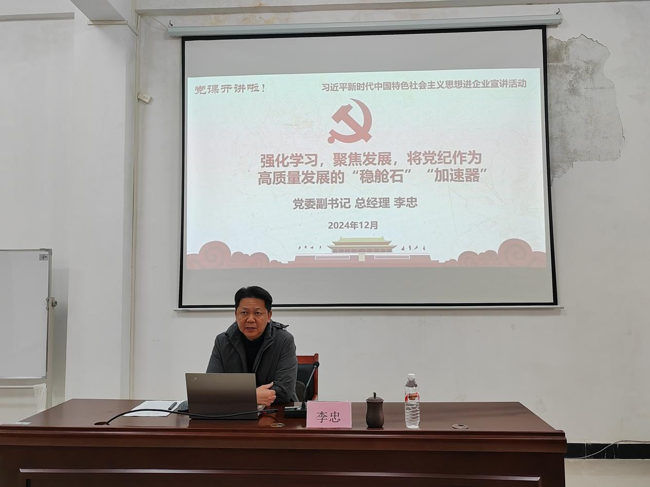 为推动党纪学习教育走深走实,进一步增强公司党员干部的纪律意识,12月13日上午,beat365公司党委副书记、总经理李忠到污水公司讲授了一堂主题为“强化学习,聚焦发展,将党纪作为高质量发展的‘稳舱石’‘加速器’”的专题党课。beat365公司代表和污水公司、固废公司全体员工30多人参加。