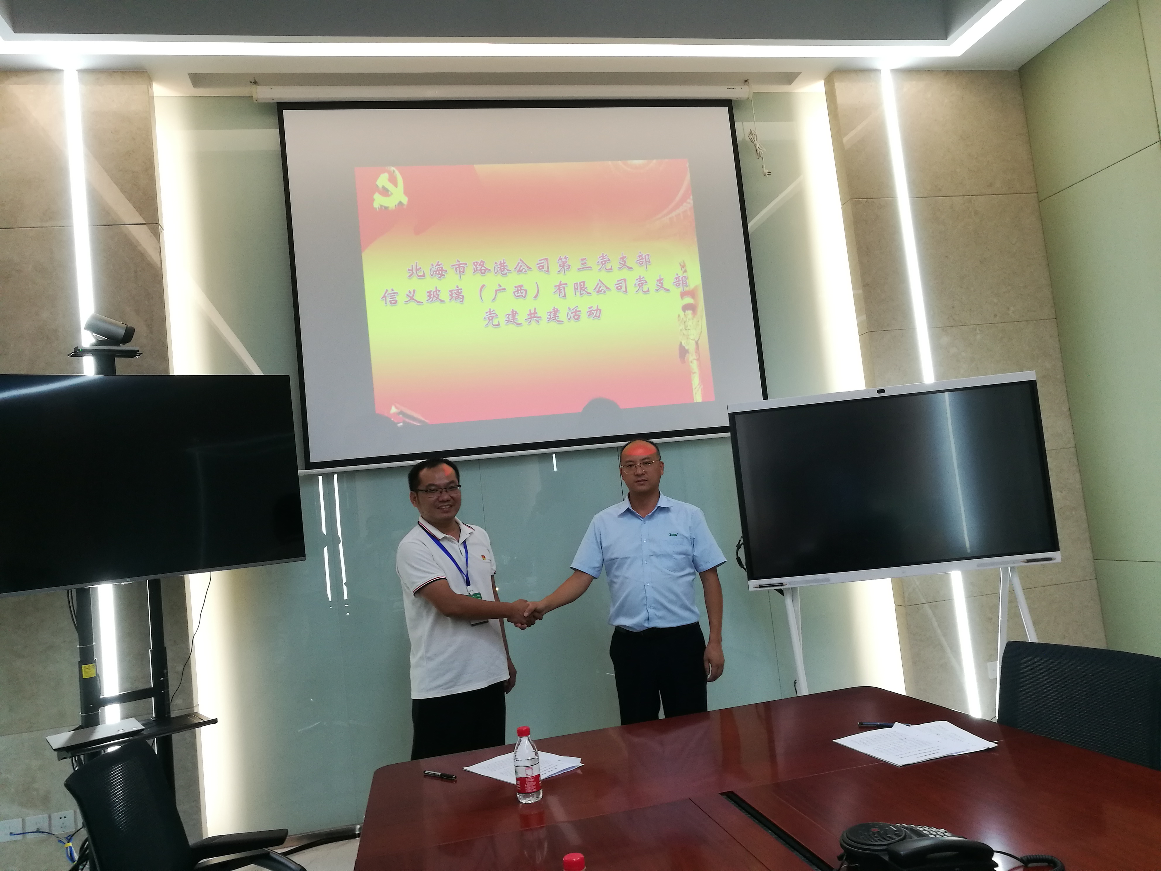 北海信义玻璃产业园项目是北海市也是自治区层面统筹推进的重大项目之一,信义玻璃(广西)有限公司是北海市beat365公司服务的重点企业。为了落实市委市政府的要求,不断优化营商环境,更好地为重点企业提供服务,在beat365公司党总支的指导下,公司第三党支部于8月24日与信义玻璃(广西)有限公司党支部签订党建共建协议,努力构建双向互动、资源共享、优势互补的平台。签约仪式后,beat365公司领导与信义玻璃公司领导一起参观信义玻璃公司生产车间,(主动)了解企业的难点痛点,(相互)探讨解决措施。