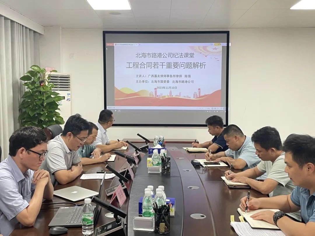 11月10日,北海市beat365公司在公司五楼会议室举办纪法课堂专题讲座,特邀广西嘉友律师事务所陈强律师作题为《工程合同若干重要问题解析》专题讲座。公司工程一部、工程二部、发展部等7个部门50余人参加。